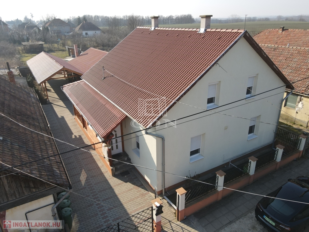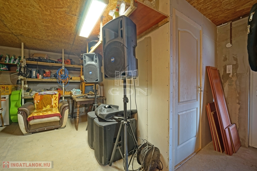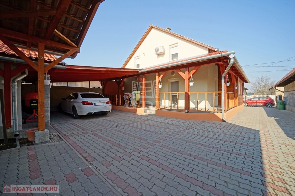 Az udvaron 36 m2-es fedett gépkocsitároló, fütött nyárikonyhaként használt 57 m2-es szigetelt melléképület és egy 60 m2-es szanetli található.