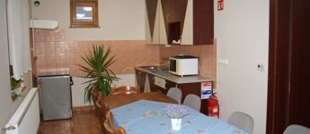 Hajdúszoboszló frekventált, zöldövezeti részében, apartmanház kiadó 3+2 szobával, elsősorban hosszabb távra. A családi apartman főépülete 2021-ben teljes felújításon esett át: új nyílászárók, 200X180-as ágyak kerültek elhelyezésre új matraccal, valamint új laminált padló és új szaniterek kerültek beépítésre a 3 különálló szobába. Mindegyik szobához önálló fürdőszoba, valamint egy közös nappali teljesen felszerelt konyhával tartozik. Az apartman mindegyik szobája légkondicionált, wifivel, sík képernyős TV-vel és hűtőszekrénnyel ellátott. A szobák kellemes méretűek, 2+1 fő elhelyezése lehetséges, a szobák mérete 18 m2. Az apartman földszinti, és akadálymentesített.