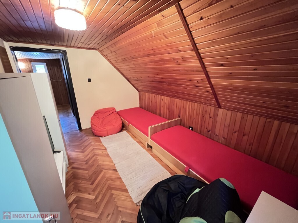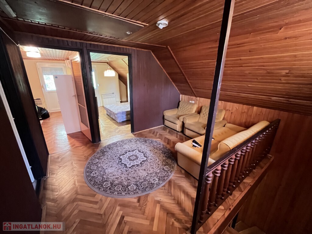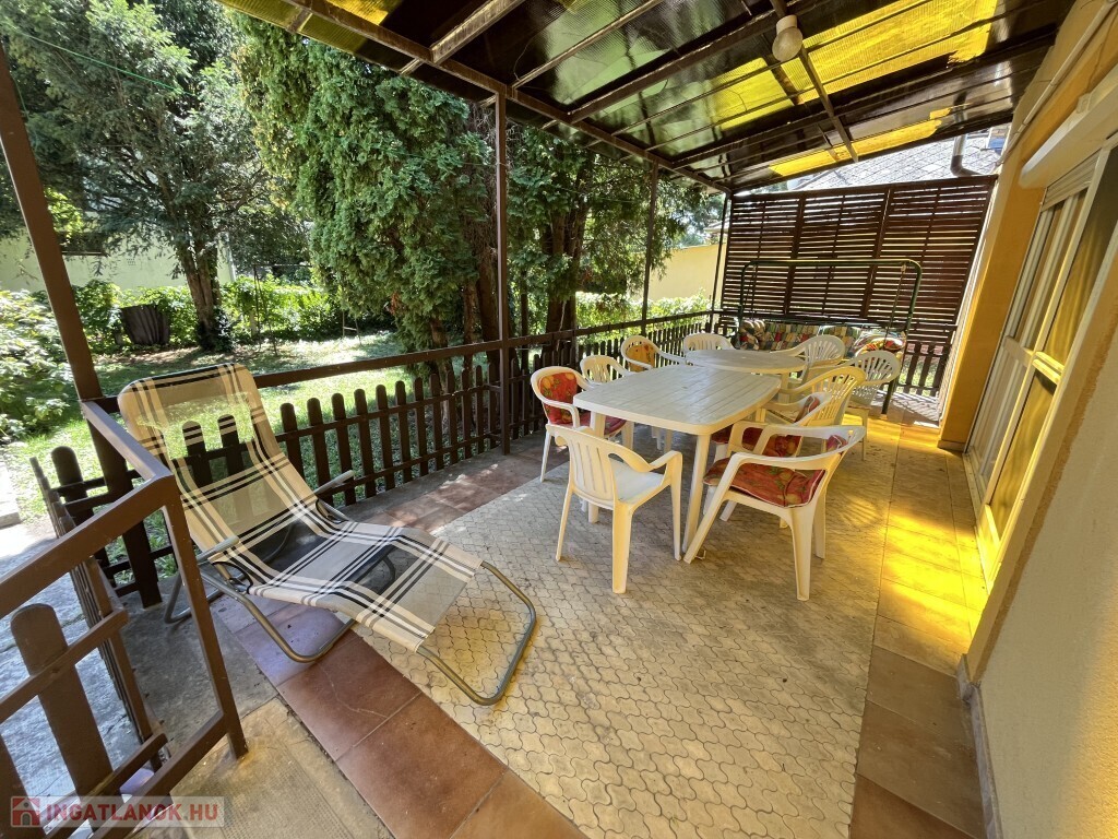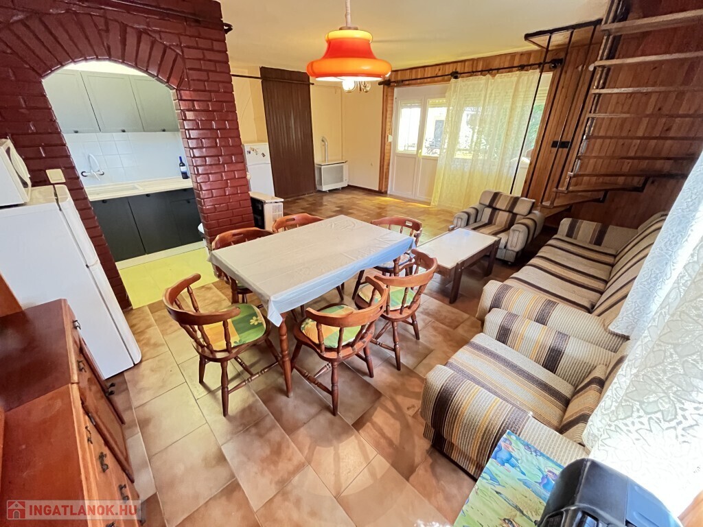Balatonfenyvesen a vízpart közelében, a strandtól 950 m-re található - 1983-ban épült, akár azonnal is birtokba vehető nyaraló eladó. A 80 m2-es, 2 szintes épület alsó szintjén előszoba-nappali-étkező-főzőfülke beépített konyhával, 1 hálószoba, fürdőszoba-zuhanyzó, wc helyiségek találhatóak, valamint a ház mögött pedig egy hangulatos 19 m2-es fedett terasz található. A tetőtérben 2 szoba - mindkettőből ki lehet lépni az erkélyre -, fürdőszoba-wc kerültek kialakításra. A nyaralóban a fűtés gázkonvektorral, a meleg víz ellátása villanybojlerrel megoldott, az épület teteje Bramac tető és a külső falazatra 10 cm. hőszigetelés került, illetve a tetőtérben mindkét szobában hűtő-fűtő klíma is van. Az udvarban található csónakházként épített 22 m2-es tégla épületben 1 szoba, teakonyha sarok, fürdőszoba-wc kerültek kialakításra, ennek az épületnek a tetőtere igény esetén még beépíthető, illetve egy napozó teraszt alakított ki a tulajdonosa. Az udvarban van még kis 3 m2-es tároló, gépkocsi beálló is van. Telek: 571 m2