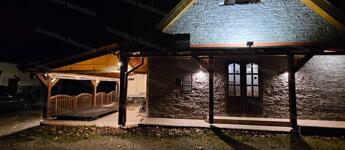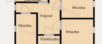 -az alsó szinten felszerelt konyha, tágas étkező, szoba található, míg a tetőtérben vannak a  mosdók. Szintén a tetőtérben kialakításra került 3 félszoba, fürdőszoba WC-vel.