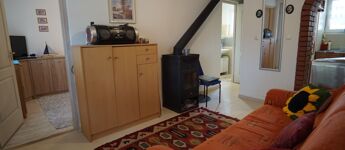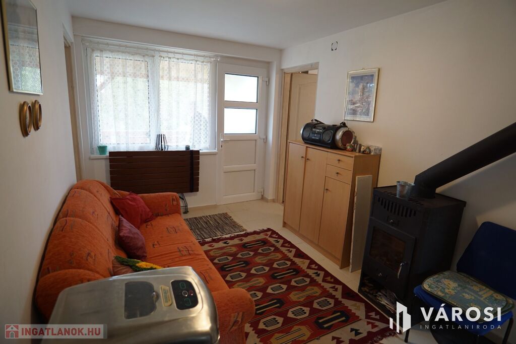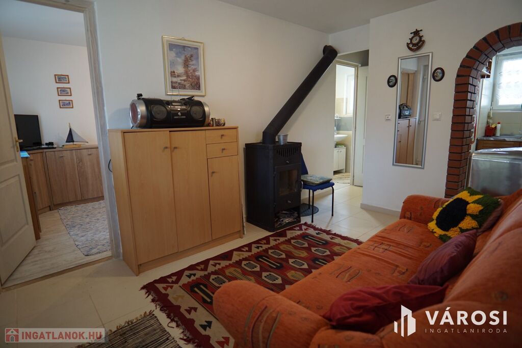 A ház melegét egy fa tüzelésű kandalló szolgáltatja, mely víz térrel is rendelkezik, így akár a központi fűtés is kialakítható. (A két szoba falában az előszerelés, csövezés elkészült a kandallóig.)