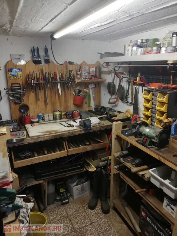 A kertben gyümölcs fák, kerti sütögető, és szerszámos tároló, kerti mellékhelyiség, egy kis épített gyerekmedence biztosítja az itt tartózkodók kikapcsolódását.