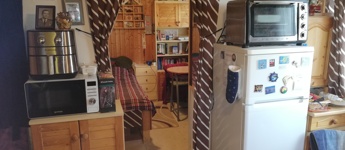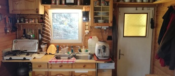 Fűtése cserépkályhával illetve elektromos fűtőtestekkel történik. A melegvizet villanybojler biztosítja. Panorámás déli fekvésű teraszon keresztül közelíthető meg a lakótér, mely egy étkezős konyhából, szobából, és egy wc-fürdőszobából áll.