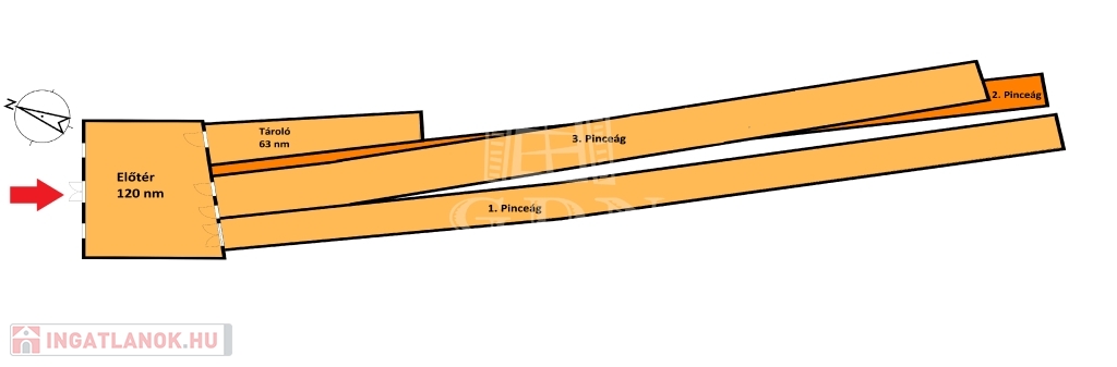 Mind a három pinceág egy kisebb előteremből és egy ebből nyíló 60 méter hosszúságú 6 méter széles 2,5 méter belmagasságú pinceágból áll.