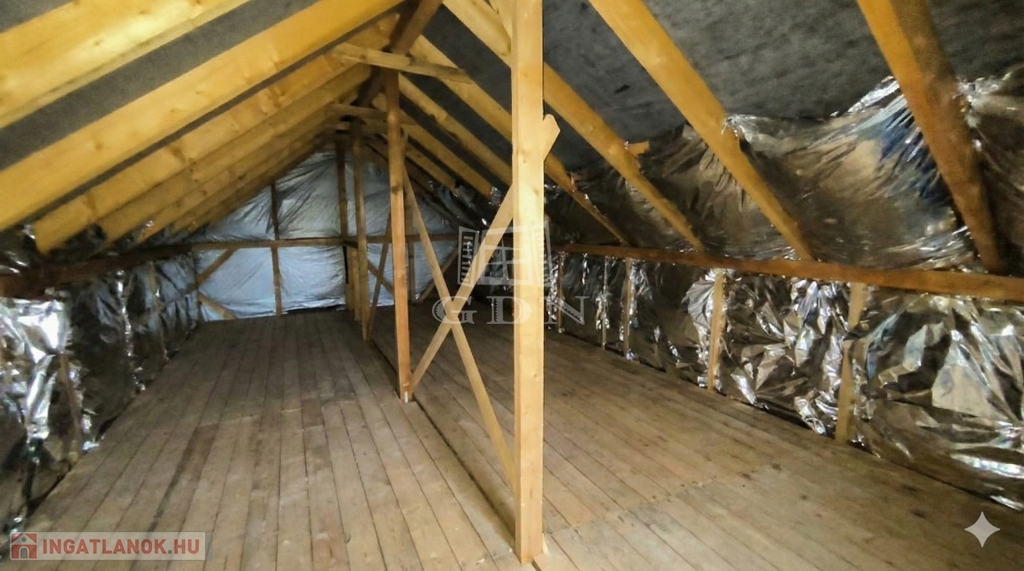 A ház maga egy amerikai konyhás nappaliból és egy fürdőszobából áll. Külső feljáró vezet a tetőtérbe jelenleg, de ráfordítással itt lehetne a háló, nagysága, belmagassága megfelelő. A 15 centis szigetelésnek köszönhetően egy Nobo panellel kifűthető