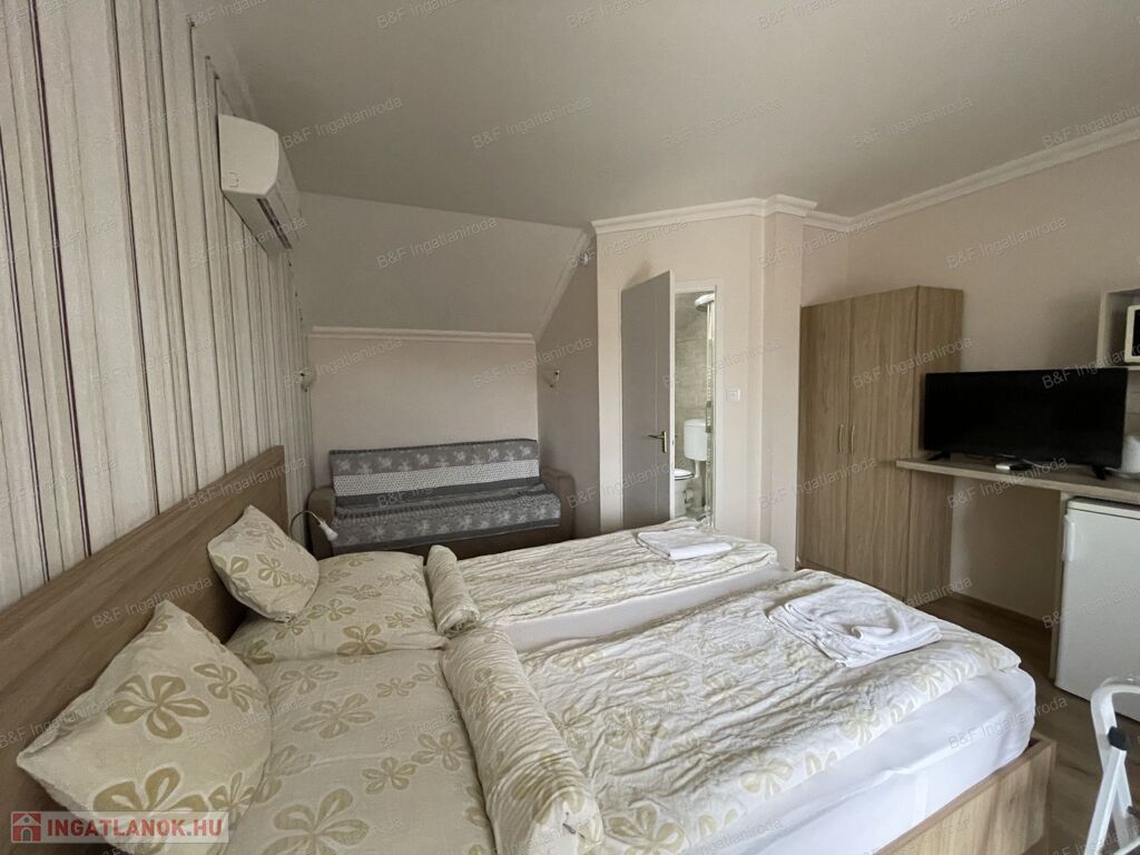 A másik épület 3 szinten, összesen 5 apartmanból áll. A földszinten és az emeleten 2-2, a tetőtérben egy, egyenként kb 20 nm-es, szintén konyhával, zuhanyzós fürdőszobával felszerelt apartman található. Az emeleti apartmanokhoz nagy erkély tartozik.