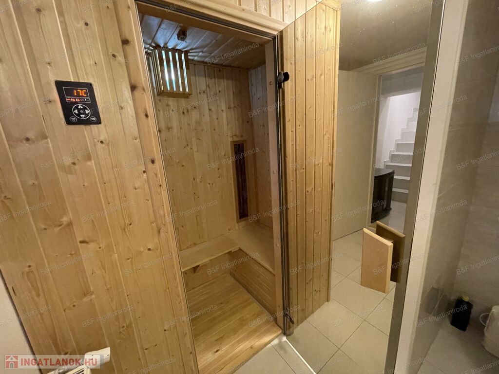 A lakás alatt egy 40 nm-es szuterén került kialakításra, melyben egy szoba, konyha, fürdőszoba, folyosó, valamint egy szauna is található. Ez az épületrész a lakásból és közvetlenül az udvarról is megközelíthető.