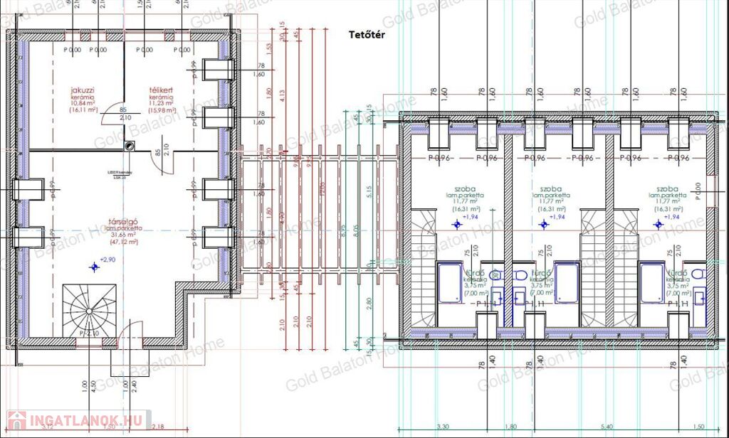 - az épületek fedése,(jelenleg az apartmanház) piros színű betoncseréppel