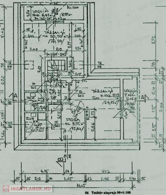 5. Tetőtér, kelet – 1 szoba, fürdő WC-vel, kb. 24 m2, teljes alapterület 37 m2, loggia 6 (9) m2