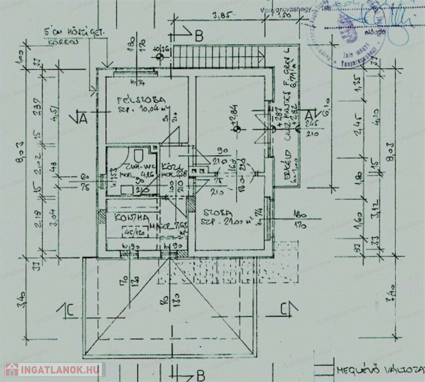 1+2 félszobás, emeletes épület, gáz-cirkó fűtéssel, földszinti tárolókkal (cca. 2x46 m2).