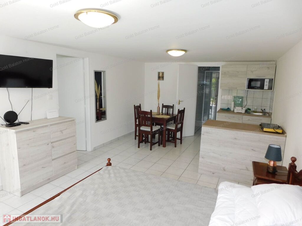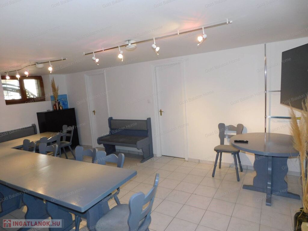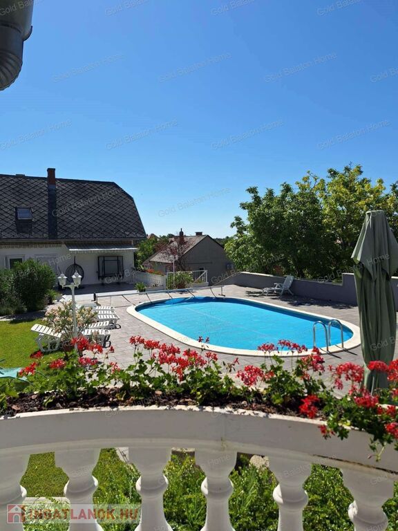 A Gold Balaton Home Ingatlaniroda kínálatában eladó egy külön helyrajzi számon lévő családi ház és a szomszéd telken található, úszómedencés üdülőkomplexum (apartmanház + három apartmanlakásos bungaló).