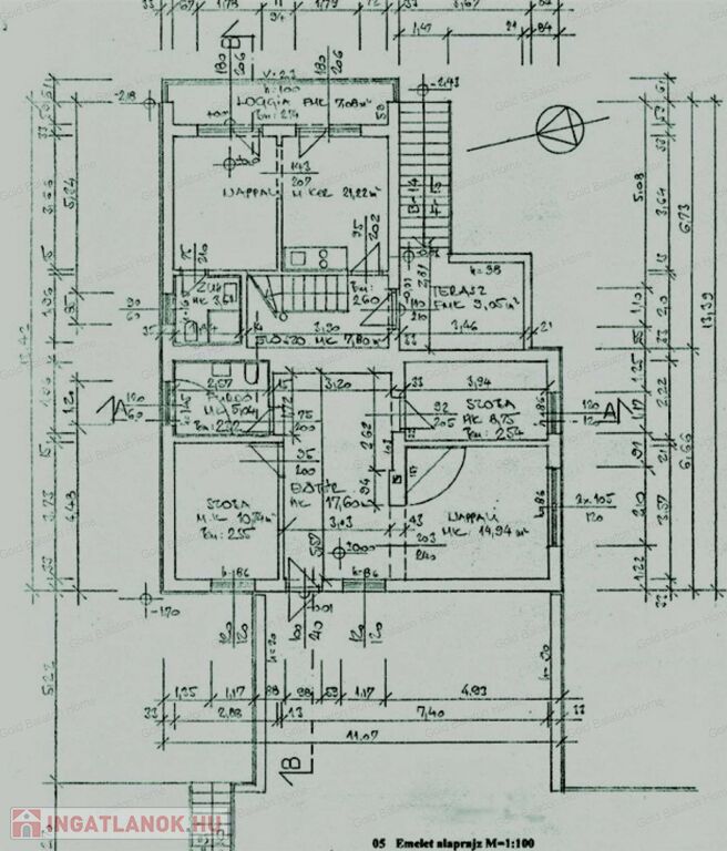 3. Emelet, kelet – 1 szoba, fürdő WC-vel, kb. 25 m2, loggia 7 m2