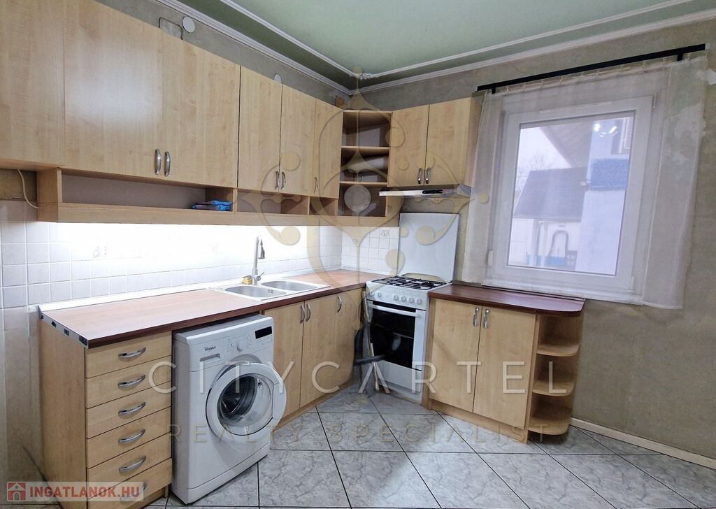 A második háznál az alsó szint eladó utcai kis előkerttel, a térköves résztől leválasztva. 81 nm-es 3 szobás, részben alápincézett. Fűtése kondenzációs gázkazán padlófűtéssel és hűtő-fűtő 5 KW-os légkondi. Nappali 22 nm, két szoba, konyha, spejz, zuhanyzós fürdő, külön WC. A ház bent akadálymentes, minden helyiség járólapos. Kazán és bojler a pincében. Áram védőszondás, biztonsági relés. Órák külön, a vízóra ikermérős. A beépített bútorok, mosógép, karnisok, a vételárrészét képezik.
