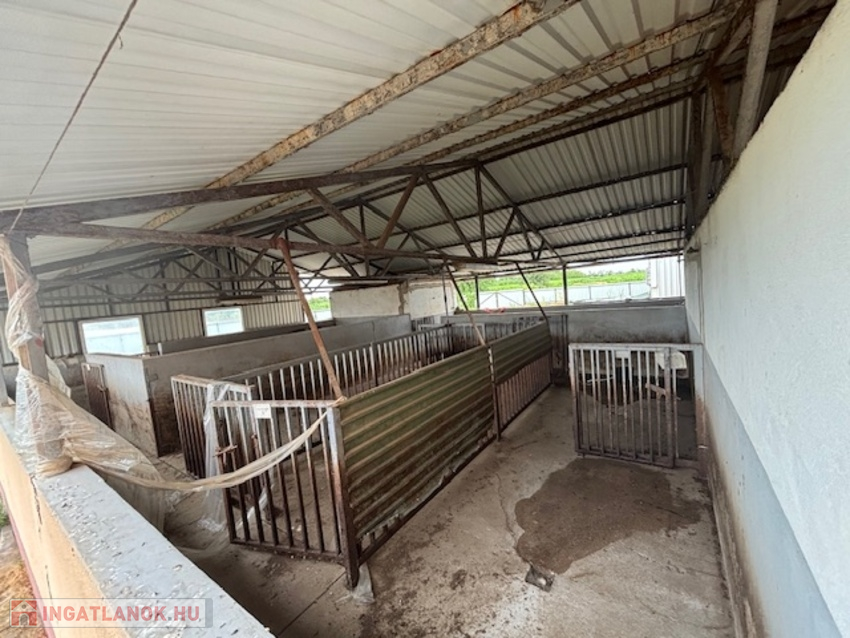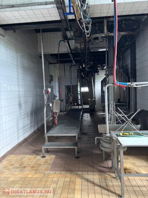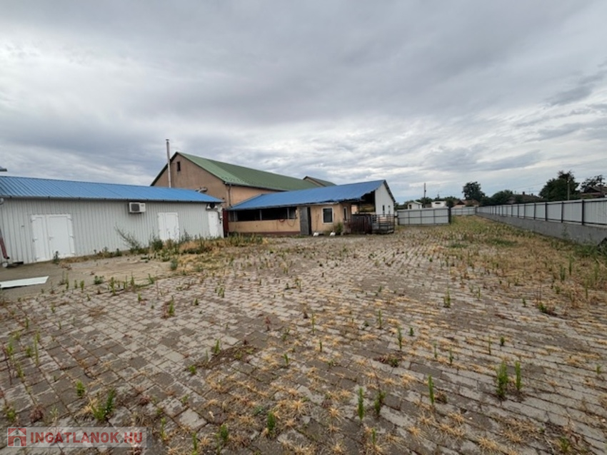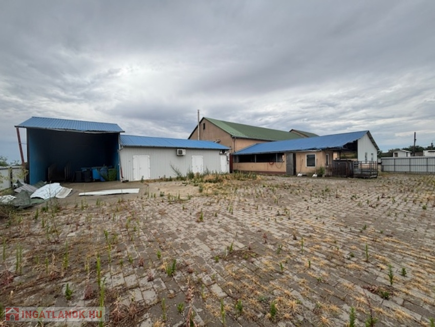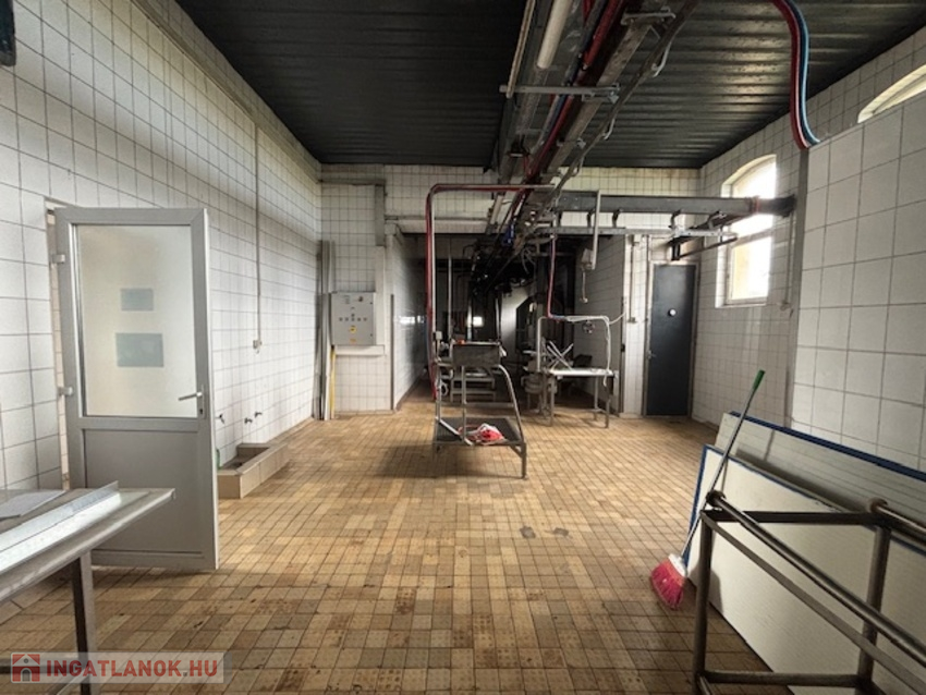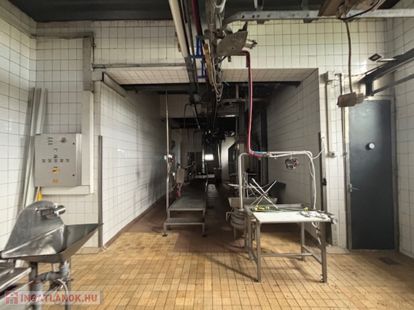 Telek 3566 nm, körbekerített, térkövezett, két oldalon bejáratos. előírásoknak megfelelően, munkához biztosított helységek: állatszállás, tárolók, vágósor, csontozó,