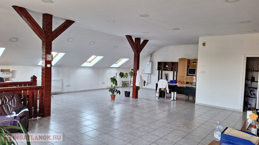 Az üzem tetőterében, padlófűtéses, hangulatos iroda.
