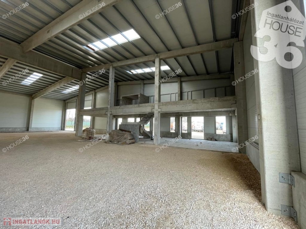 Az épület új építésű, 2000 m2-es, vasbeton szerkezetű váz, szendvicspanel borítás, kamionos közlekedés az épületen belül és körülötte is megoldott, összközműves 6000 m2 -es telek.
