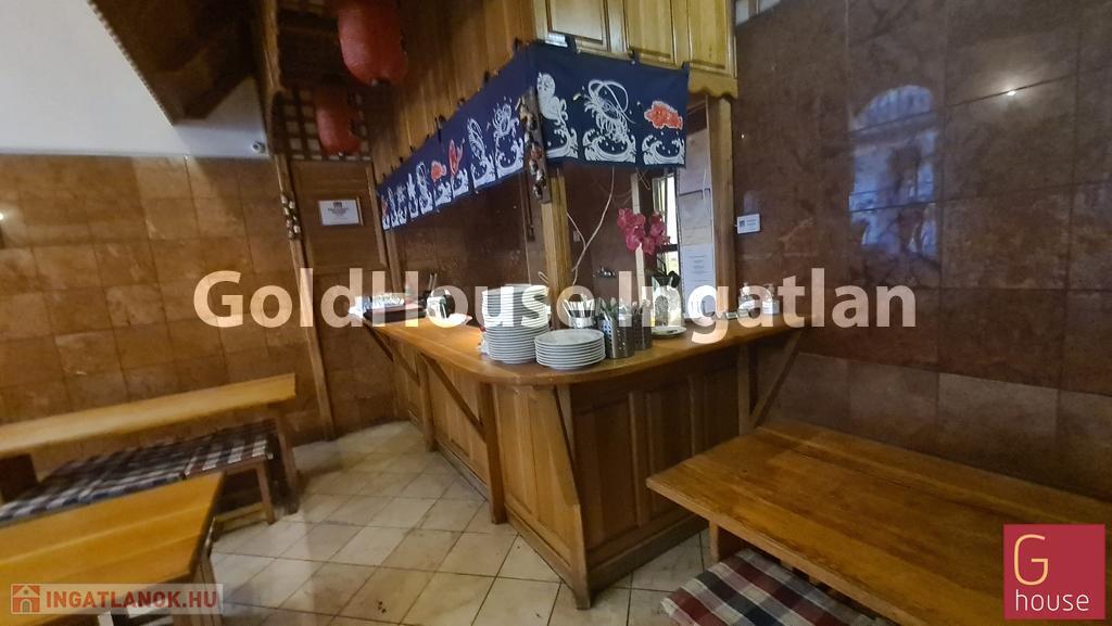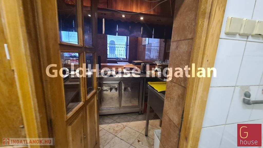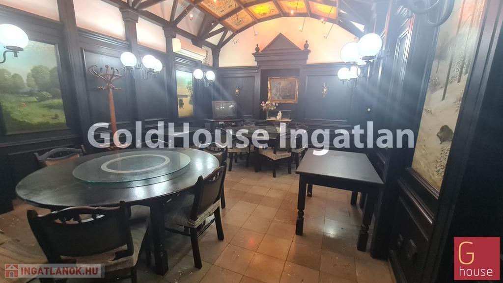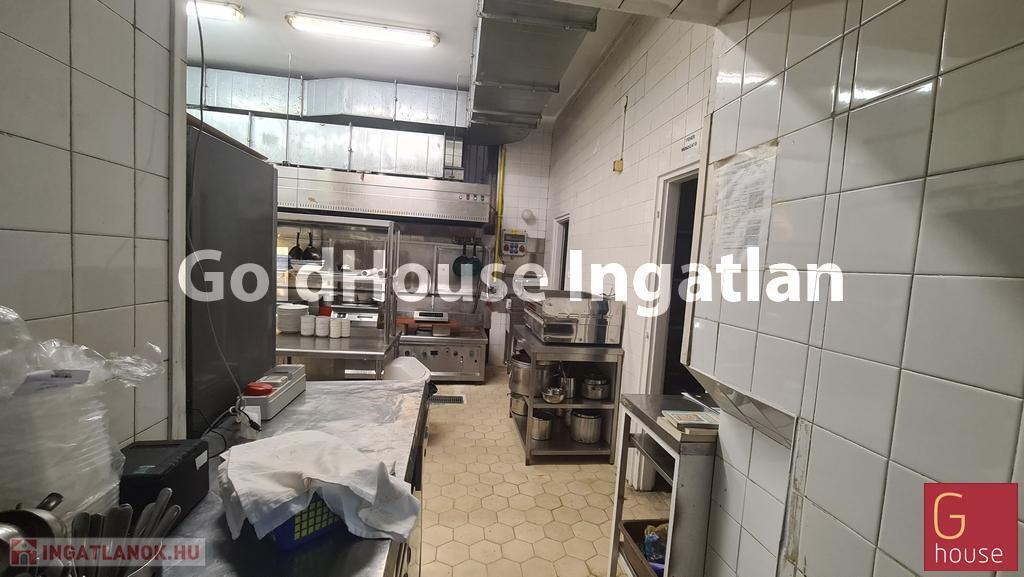 Az összesen mintegy 415 négyzetméteres alapterület két szinten helyezkedik el: a földszinten körülbelül 275 négyzetméteres, tágas vendégtér található, míg az alsó szinten egy közel 140 négyzetméteres, vendéglátásra is alkalmas pince került kialakításra. Az ingatlan korábban étteremként üzemelt, rendelkezik melegkonyhás engedéllyel, és teljes berendezéssel együtt kerül bérbeadásra, így akár azonnal megkezdhető benne az üzleti tevékenység. A vendégtér kialakítása lehetővé teszi nagyobb, akár 90 fős befogadóképességet, valamint egy elkülönített részben további mintegy 24 fő kényelmes elhelyezését.