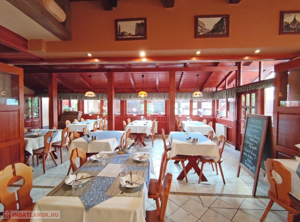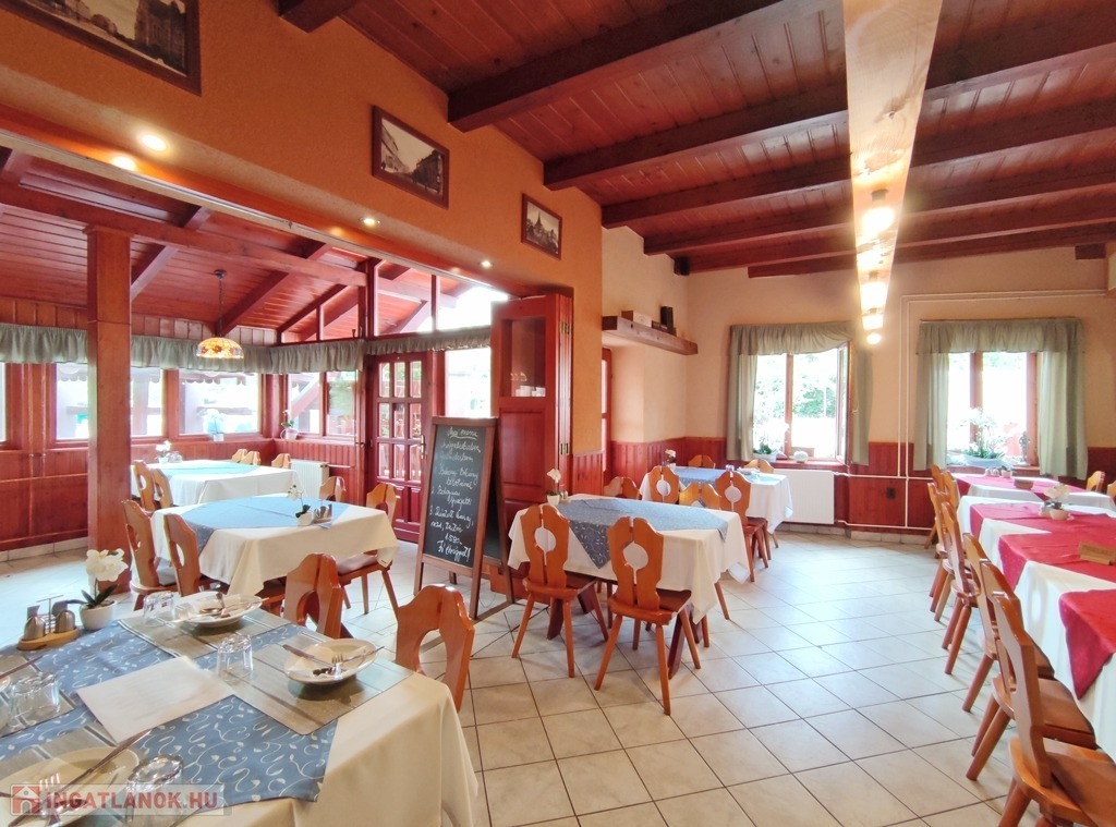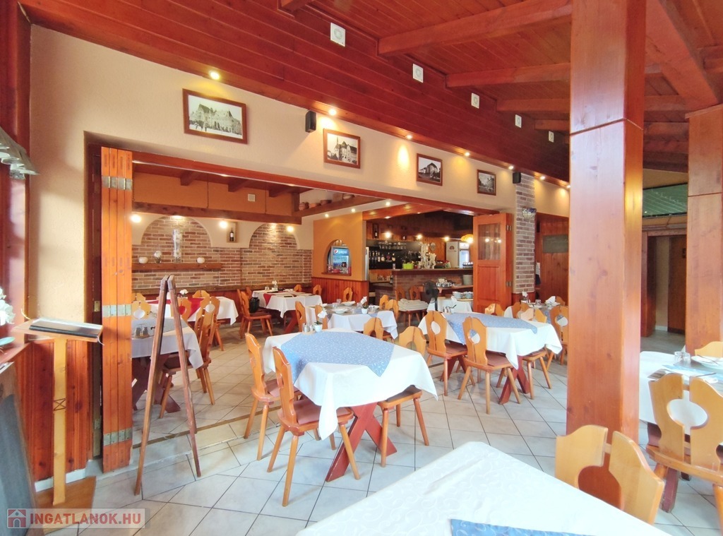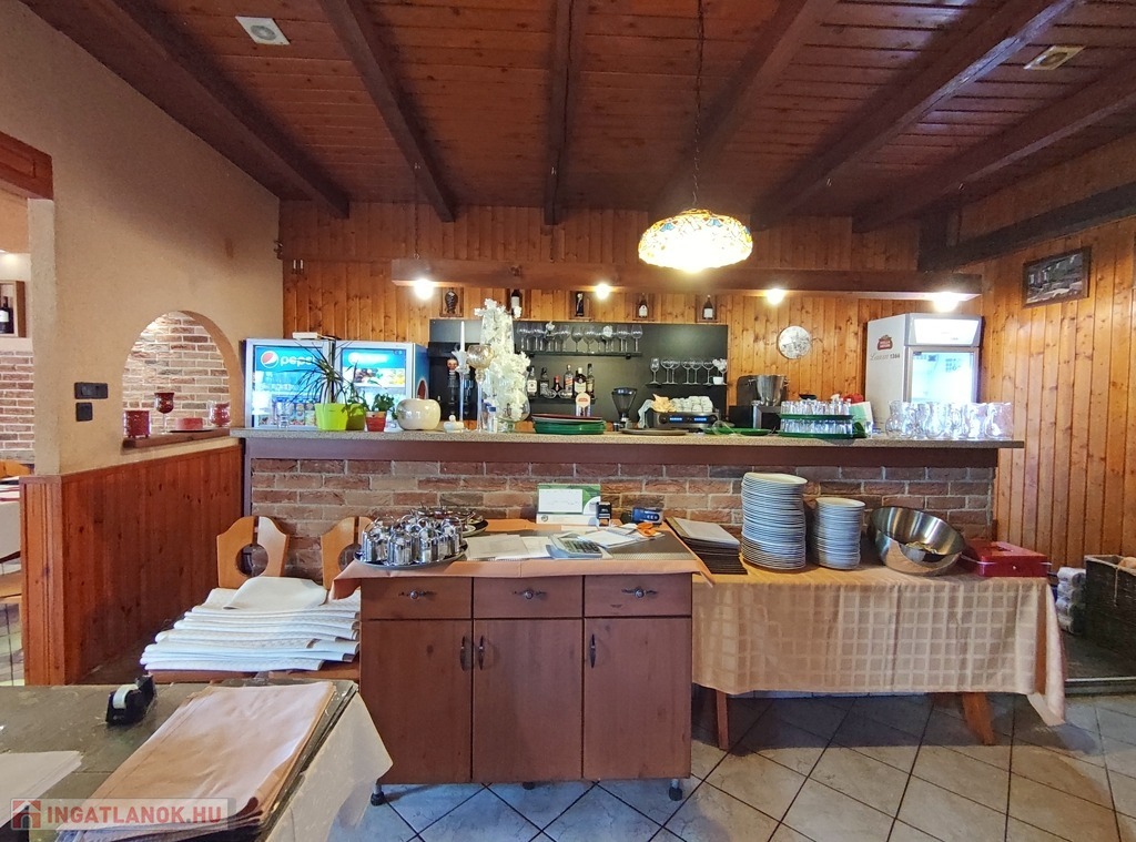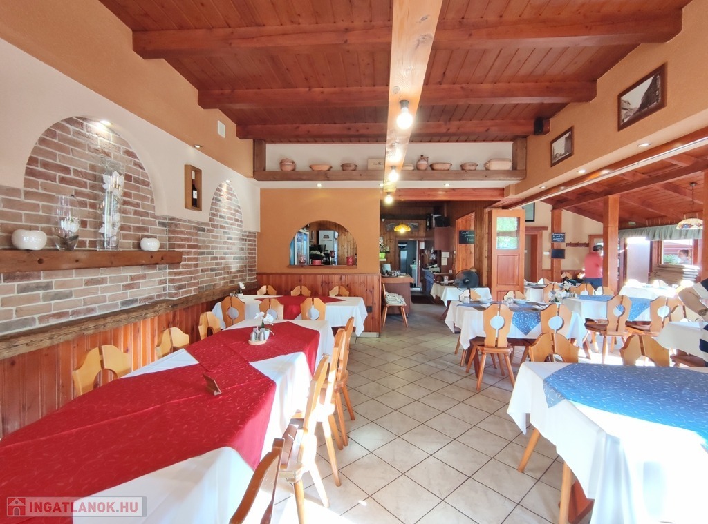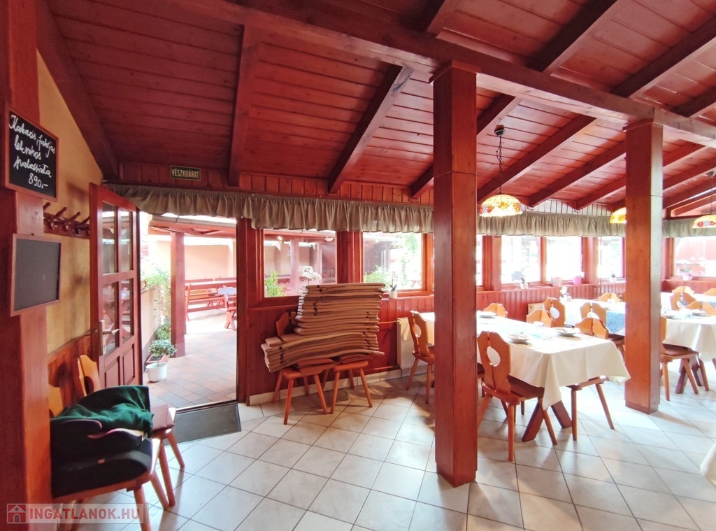 Műszaki jellemzők: az étterem vendéglátó helyisége klasszikus, pácolt fa oszlopokkal és borítással készült, kellemes érzetet kelt az ide érkezők számára. Az elektromos hálózat évekkel ezelőtt már korszerű rézvezetékekre lett kicserélve, a zavartalan működés érdekében megemelt áramerősséggel és ipari árammal. A nyílászárók fából készültek. A fűtésrendszer gázcirkós, jó minőségű, lapradiátorokon keresztül biztosítja a megfelelő hőérzetet. Átalánydíja 10.000 Ft/hó. A belmagasság a legmagasabb ponton 3,80 m. A konyha modern berendezésekkel gépesített, mely a vételár részét képezi.