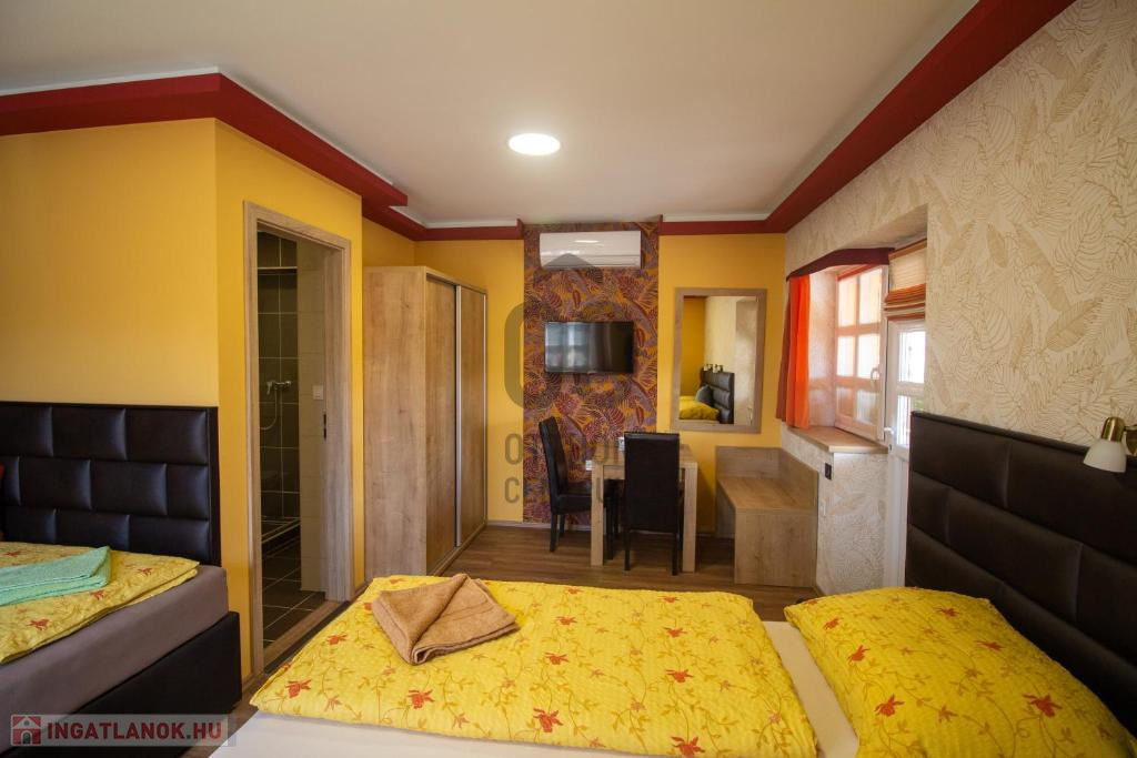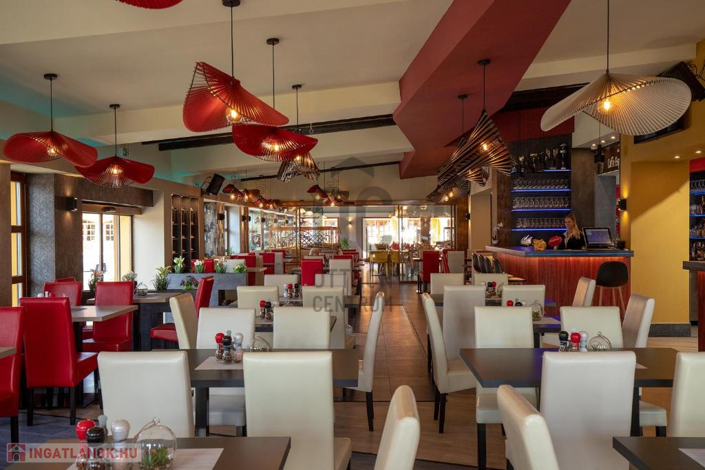 Az ingatlanhoz tartozik két meleg konyhás korszerűen felszerelt, gépiesített, engedéllyel bíró étteremmel is. A vendéglő rendelkezik az összes ÁNTSZ előírásnak megfelelő előkészítőkkel, mosogató helyiségekkel, raktárakkal, tálalóval, főzőhelységgel. A vendéglő rendelkezik egy 200 fő befogadására alkalmas belsőhelységgel valamint egy fedett, nagy fűthető terasszal, mely téliesíthető a szigetelt egymásba lapozható üvegfalak által. Egyedi dizájn és kivitelezés, hangulatvilágítás gondoskodik az esztétikai megjelenésről.