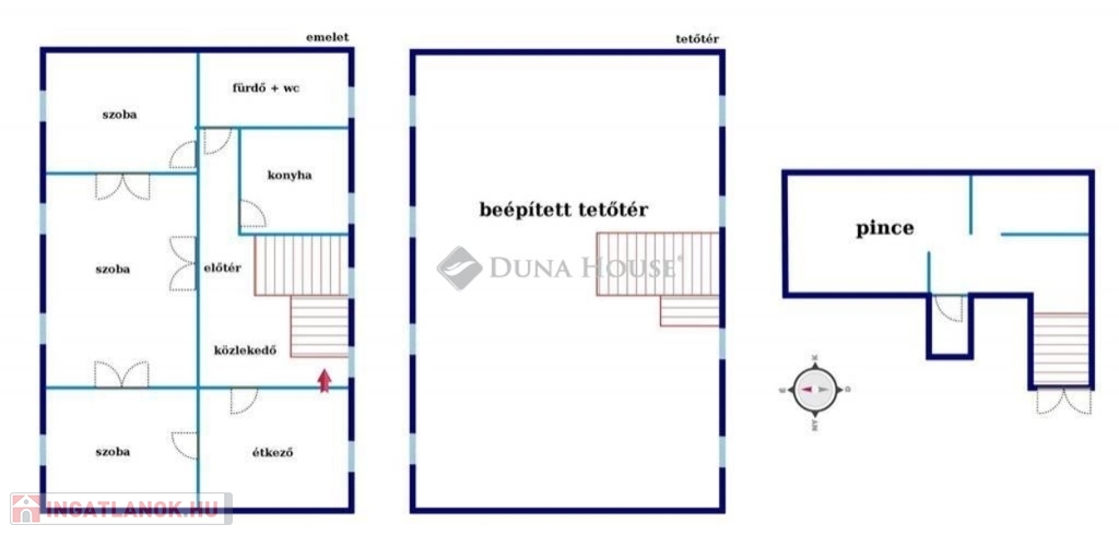 Első emelet – 132 m², négy különálló helyiség