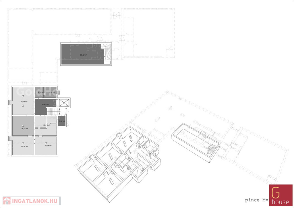 Az épület alatt található két pince helyiség, egy 234nm-esd és egy 157nm-es pince.