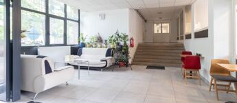 A professzionális környezethez hozzájárul a földszinti recepció, a kényelmes, váróként is funkcionáló előcsarnok, valamint az innen nyíló büfé.