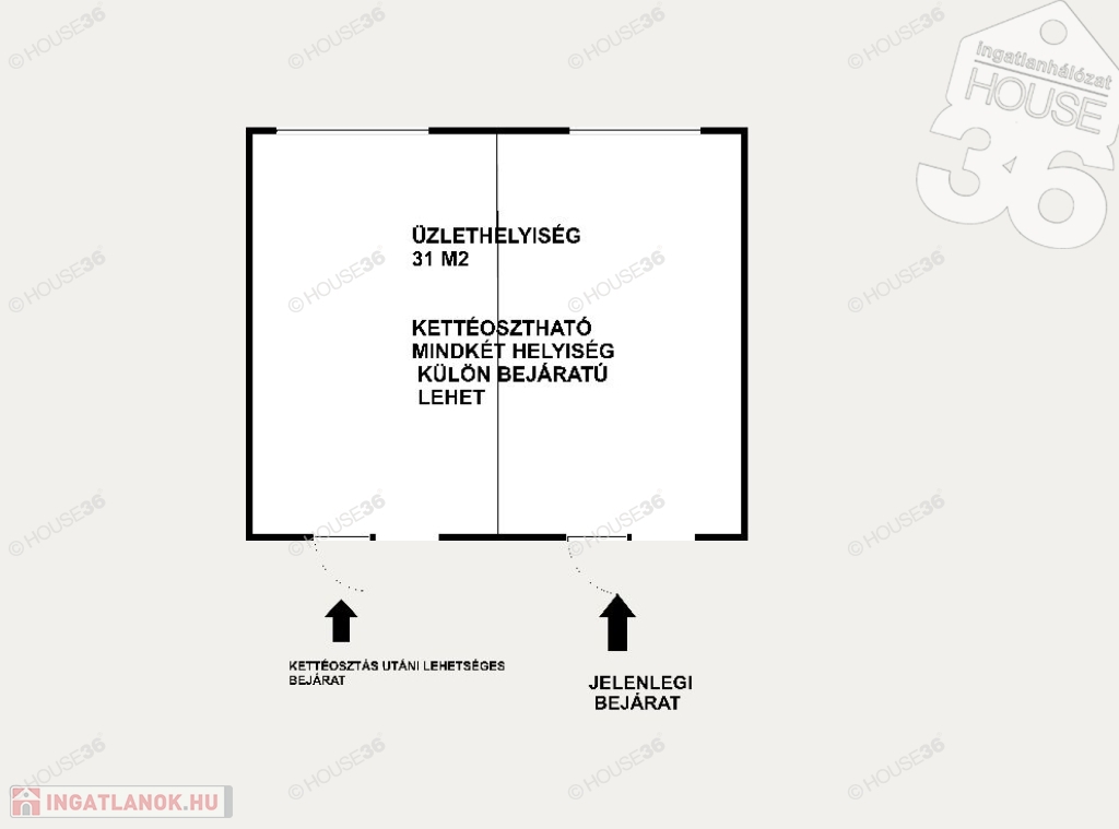 megosztható 2 db kisebb helyiségre, ez esetben mindkét üzlethez külön bejárat biztosított