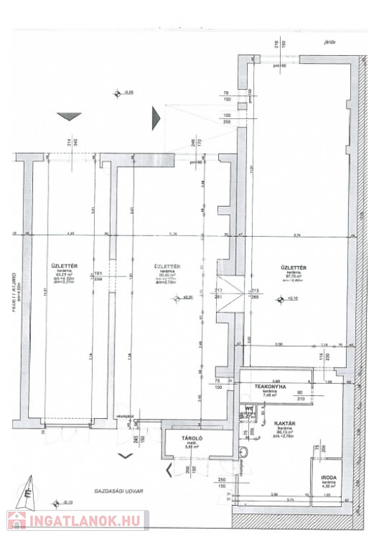 Üzlethelyiségek (központi helyen) árai:
