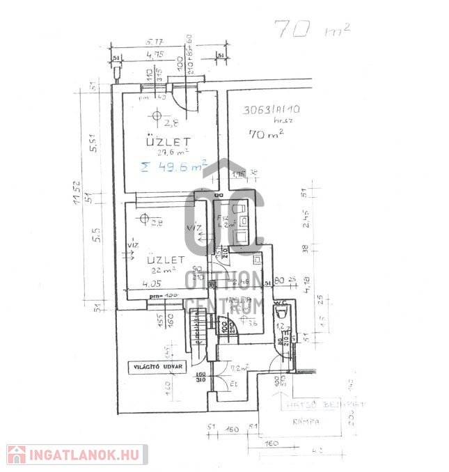 Az üzlet hasznos területe 63 nm, melyből az üzlettér ötven négyzetméter, (iroda tíz négyzetméter, raktár hét négyzetméter, tusoló-Wc-kézmosó-öltöző négy négyzetméter.