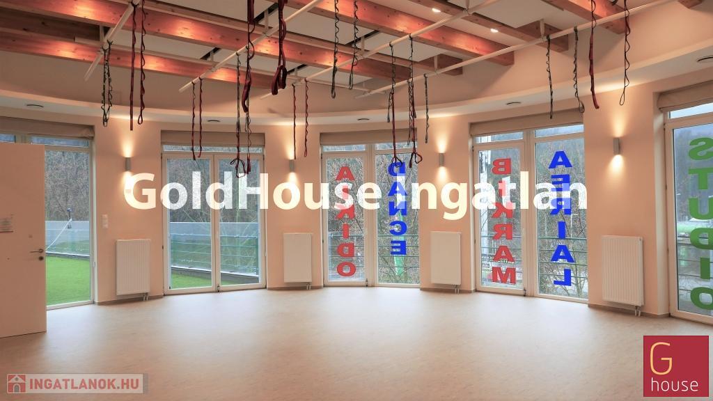 Eladó a Budapest II. kerület Hűvösvölgyben egy magas műszaki színvonalon kivitelezett, panorámás, műfüves teraszos, belső kétszintes, 588 nm-es, 18 db FELSZÍNI GÉPKOCSI BEÁLLÁSI LEHETŐSÉGGEL rendelkező újszerű ingatlan magas földszinti és első emeleti része. Központi elhelyezkedés, kiváló közlekedés, jó megközelíthetőség jellemzi az épületet. Az ingatlanrész alkalmas lehet bármilyen egészségügyi-, pénzügyi-, sport-, irodai- vagy más szolgáltató tevékenység folytatására. A magasföldszinten egészségügyi rendelők, jóga stúdió és egy iroda lett kialakítva. Az emeleti köríves részben jelenleg bikram jóga stúdió működik, melyhez önálló szociális helyiségek, vizesblokkok tartoznak.