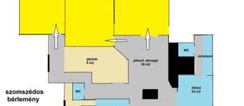 Az üzlethelyiség az utcáról nyíló, több bejárattal is rendelkezik.