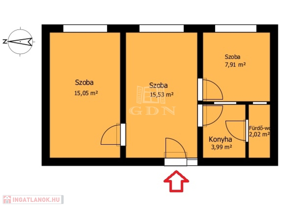Kiváló befektetés! Harmadik emeleti, 2+ fél szoba, konyha, fürdő-wc 40 m2-es alapterület.