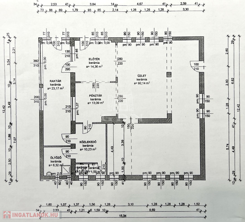 Homlokzati nyílászárók műanyag 2 rétegű, nyeregtető szerkezet kialakítás lemeztetővel, újszerű Ariston kombicirkó fűtés, ipari áram, stb.