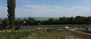 A Balaton víztükre már a telek alsó részén is látható, de a majdani épület felső szintjéről zavartalan panoráma nyílik majd, amelyet hamarosan drónfotókkal láttatunk a hirdetésben.