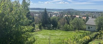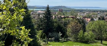 Kíváló adottságú balatonfüredi belterületi 1006 nm-es építési telek, elvehetetlen balatoni panorámával Tihanyra.