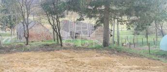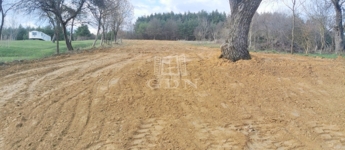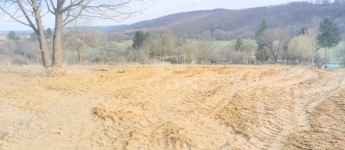 A telken néhány fa is található, így már most adott egy hangulatos, zöld környezet egy jövőbeli otthon kialakításához.