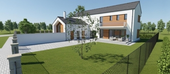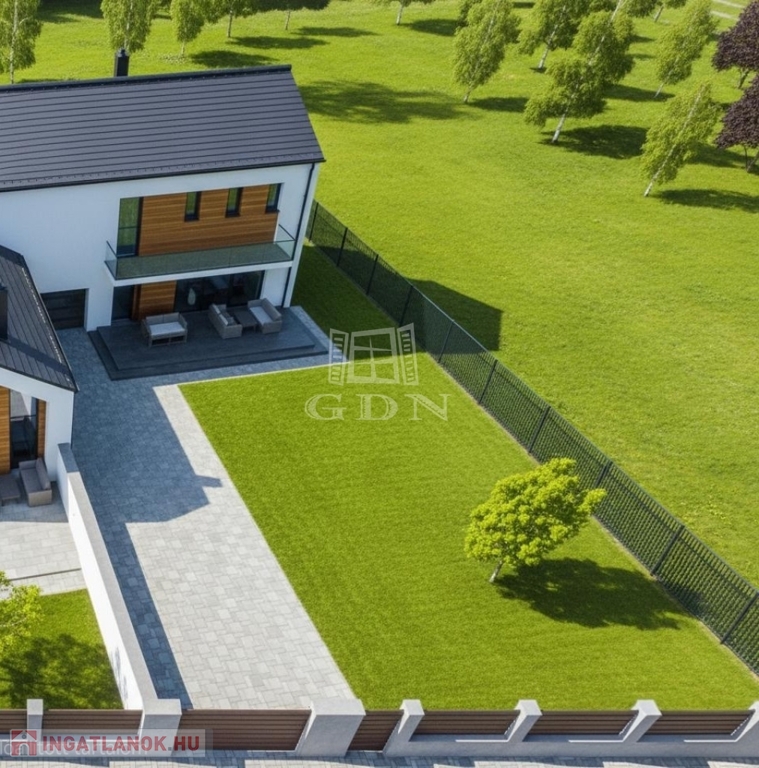 A tervek szerint egy modern ikerház épül, melynek kivitelezése azonnal megkezdhető. A telek már az ikerház tervei alapján megosztásra került, így a kialakítás maximálisan illeszkedik a jóváhagyott épülethez.