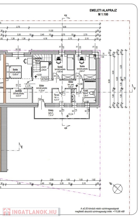 – emeleten három szoba, fürdőszoba és lépcsőház