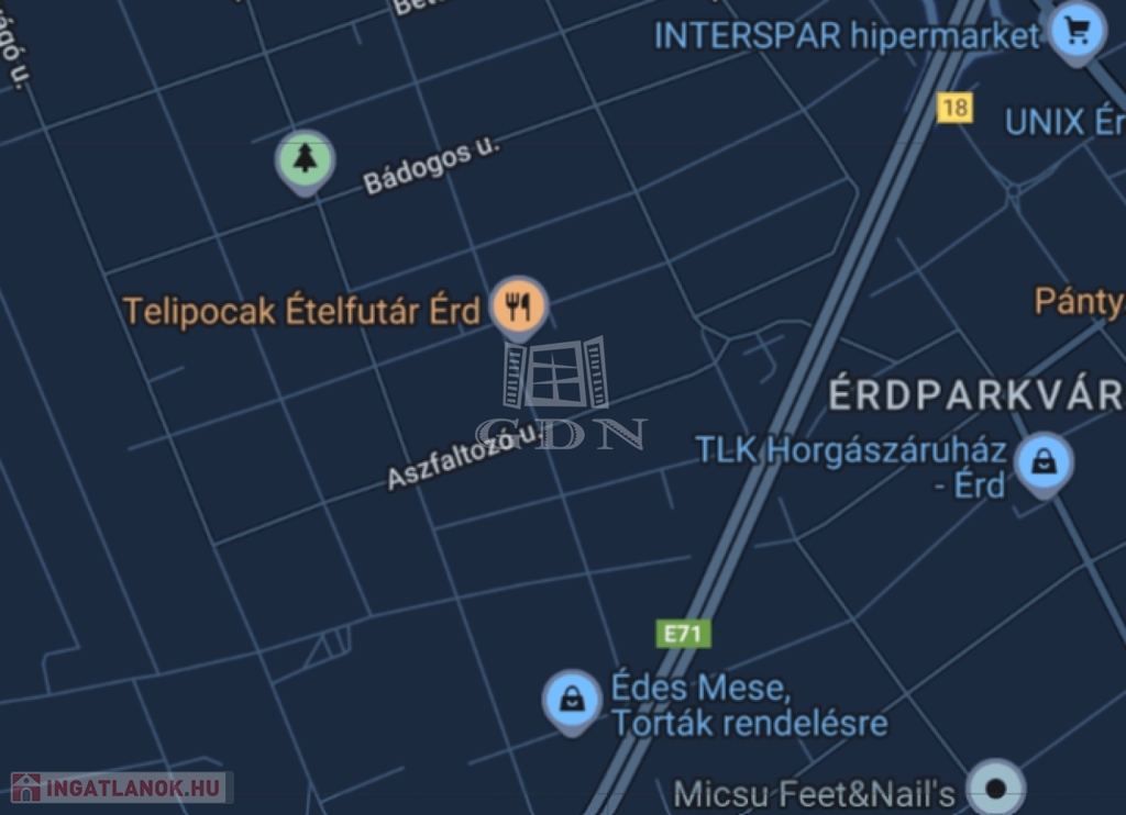 Eladó építési telek körbekerítve, villany, víz közművekkel Érd-Parkváros csendes utcájában.