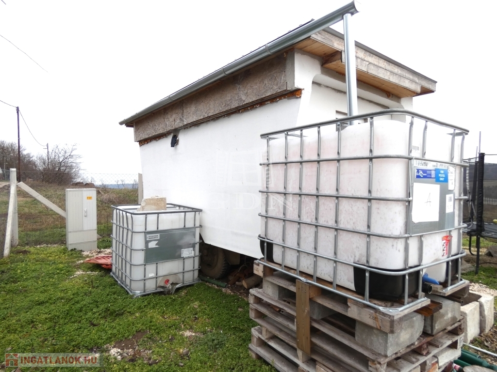 A telken egylégterű, jó állapotú, szigetelt mobilház, árammal, igény szerint maradhat + 1 millió forint ellenében.
