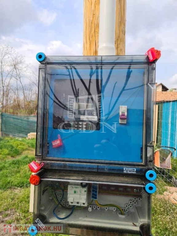 A teleken belül van az áram (feltöltő kártyás villanyóra), a víz a gáz és a csatorna a telek előtt van.
