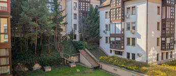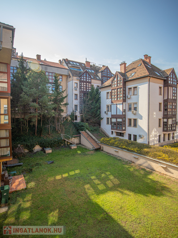 Az ablakok a ház kertje felé néznek, ennek köszönhetően rendkívül nyugodt a lakás.