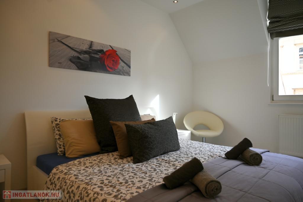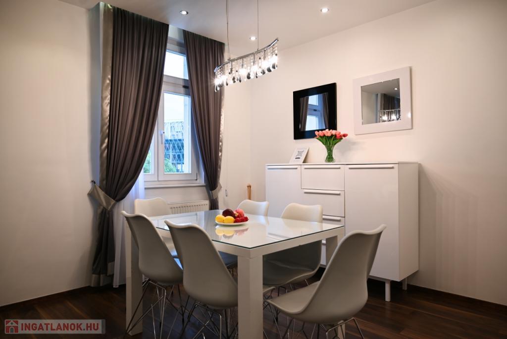 A belváros egyik legexkluzívabb részén, közvetlenül a Vörösmarty tér szomszédságában kínálunk bérbe egy 100 m-es, belső kétszintes, teljesen berendezett és modern lakást.