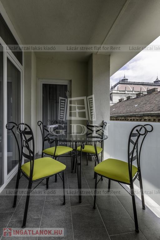 Bazilika és Operaház között , újszerű, klimatizált, két háló szobás, duplakomfortos, teraszos ingatlan teljesen felszerelve bérbeadó akár azonnali költözéssel. Az öt emeletes liftes épület felső három szintje teljesen új, a ráépítéssel párhuzamosan az egész épület megújult. A lakás belsejét minőségi anyagok és ötletes megoldások jellemzik. A lakásból rálátás nyílik az Operára. Teremgarázs opcionálisan bérlehető.