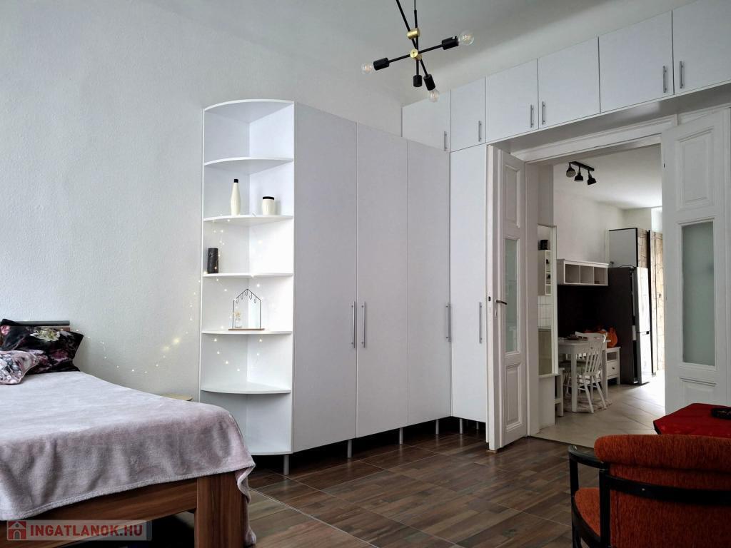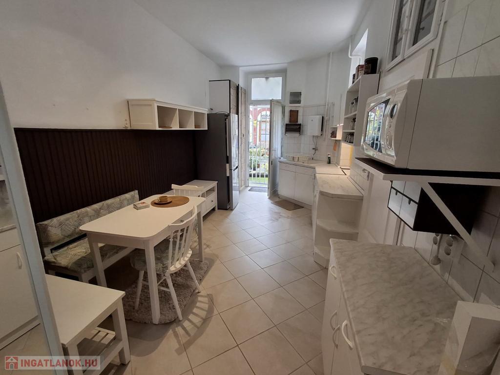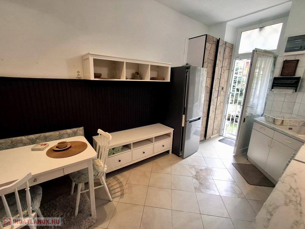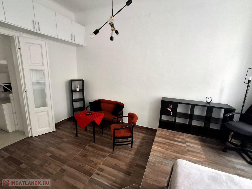 A lakás nagy utcára néző szobával, konyhával és zuhanyzós fürdővel, WC-vel rendelkezik, fiatalosan bútorozva és gépesítve kiadó.