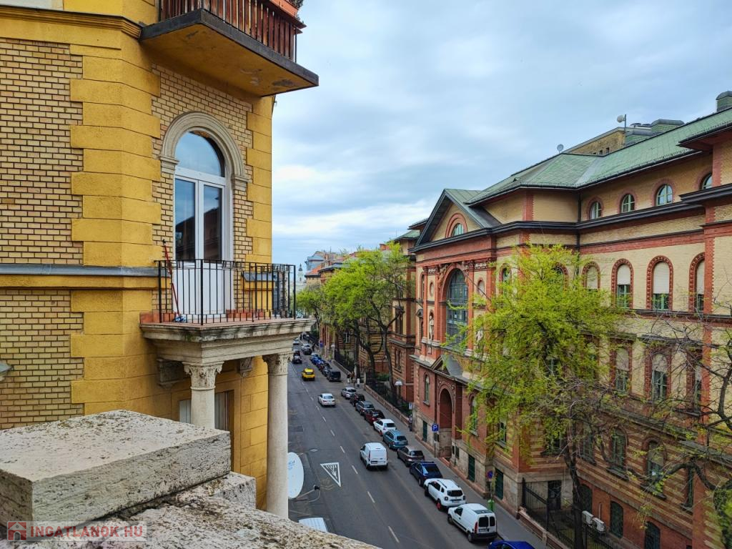 Két szoba ablakai utcára, egy a ház csendes, belső udvarára néz. Az ablakok rendenyősek.