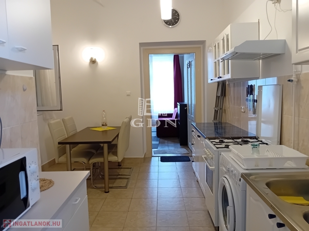 A lakás bútorozott, gépesített (mosógép, kombinált hűtőszekrény, gáztűzhely, páraelszívó, mikrohullámú sütő, tv).