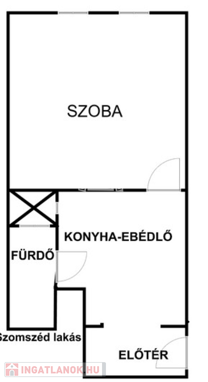 A harmadik emeleti lakás előszoba, ebédlő-konyha, fürdőszoba, szoba elrendezésű, alapterülete 40 nm.