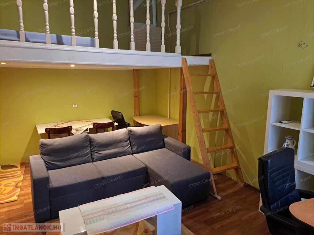 A József körúton kiadó egy lift nélküli társasház 2.emeletén található, 31 négyzetméteres, belső udvarra néző, teljesen gépesített és bútorozott, galériás lakás.