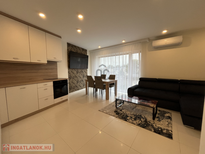 Az ingatlan még senki által nem lakott, gépesített konyhabútorral, új bútorokkal, háztartási gépekkel várja első lakóját!